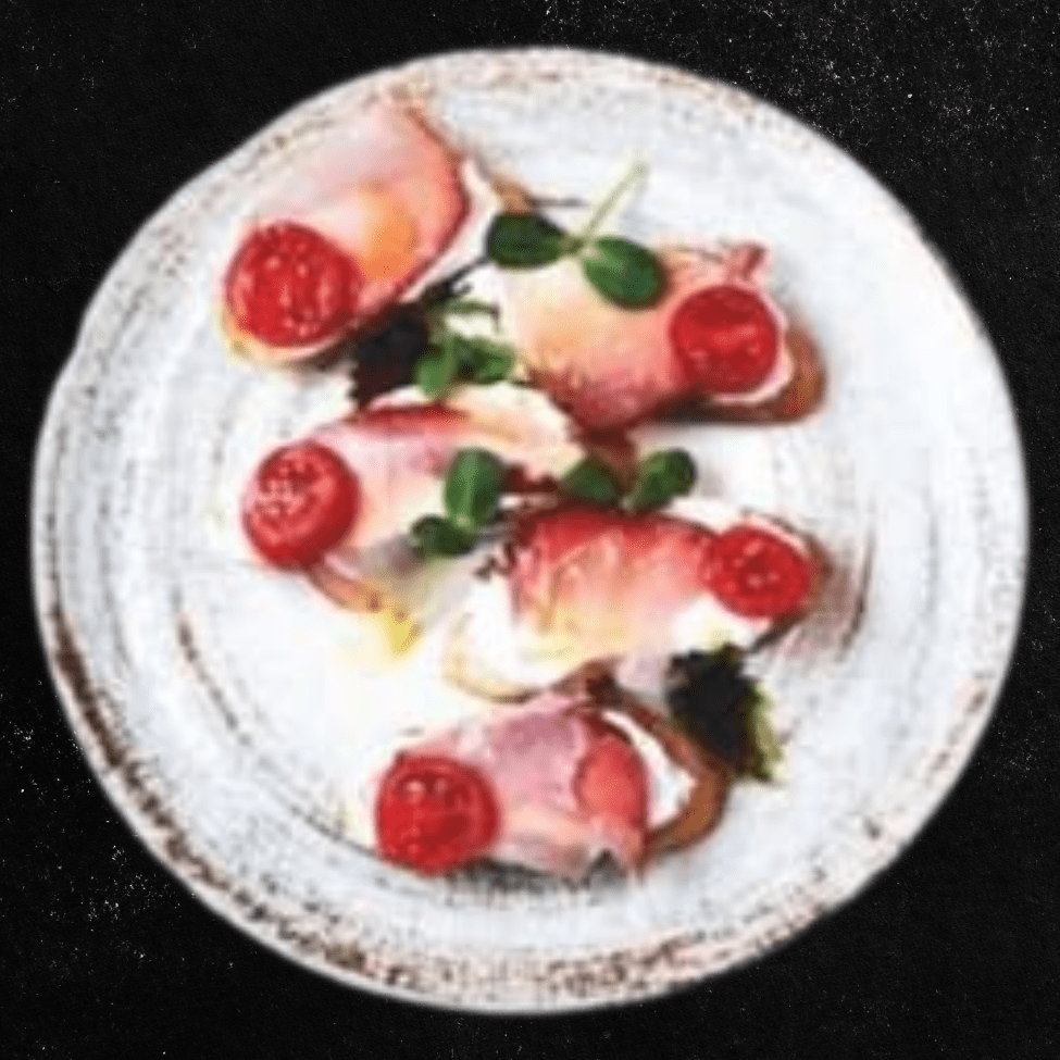 Pršuta, sirni namaz, čeri paradajz.