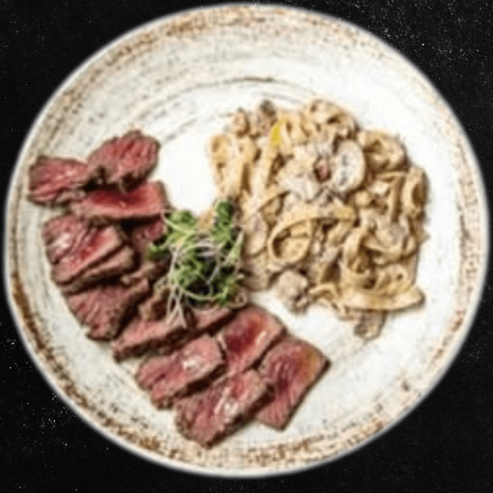 Taljatele 120 gr, piletina, sušeni paradajz, soja sos i neutralna pavlaka.